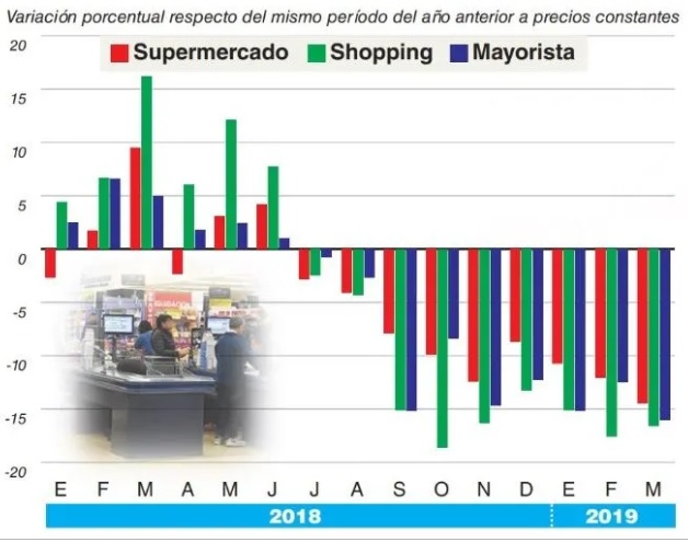 El INDEC public贸 los datos de facturaci贸n de comercios en marzo, con ca铆das extraordinarias.