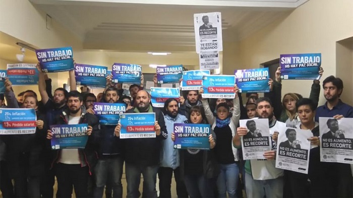 El ministro pensaba realizar un encuentro con periodistas en el Ministerio de Econom铆a pero empleados se lo impidieron con carteles que dec铆an "basta de despidos"; "sin trabajo no hay paz social", entre otros. Esto sucedi贸 el viernes 1潞 de junio. MIR脕 EL V脥DEO DE LA CONFERENCIA PUBLICADO POR CAGL TV !!!!