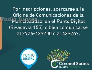 Comienzan cursos de computación y manejo de celulares en el Punto Digital Coronel SuárezEstá abierta la inscripción en el Punto Digital, que está a cargo del área de Comunicaciones de la Municipalidad de Coronel Suárez, para los cursos básicos de computación y de manejo de celulares. |