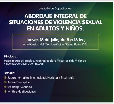 Se realizará en Pringles una jornada de capacitación sobre violencia sexual en niños y adultosEsta problemática será abordada de manera integral el jueves 18 de julio, por especialistas del Ministerio de Salud bonaerense. |