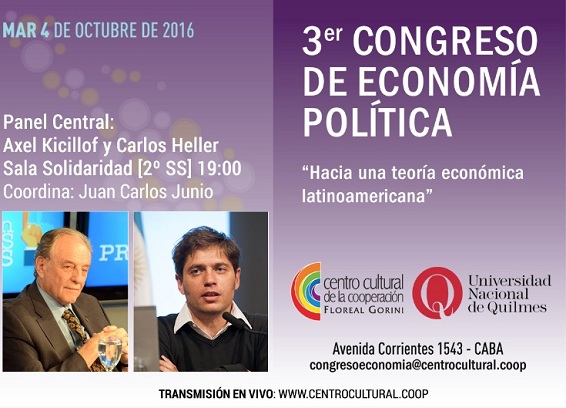 Kicillof y Heller en el Tercer Congreso de EconomÃa PolÃticaLos referentes del pensamiento económico heterodoxo participarán del panel central del encuentro que se realiza con la consigna "Hacia una teorÃa económica latinoamericana". |