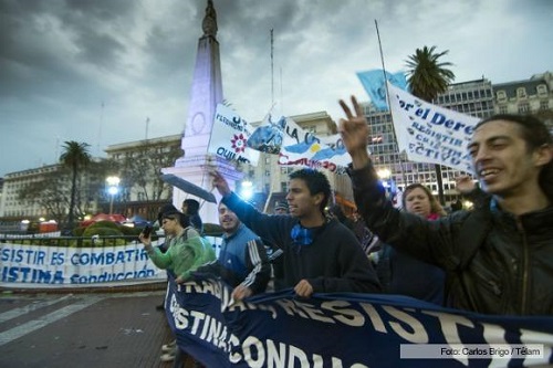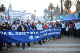 Cientos de personas acompañaron a las Madres de Plaza de Mayo en la primera jornada de la Marcha de la Resistencia que bajo la consigna "Por el derecho al trabajo, resistir sin descansar. Cristina conducción" volvió a ocupar la histórica plaza luego de diez años porque el "enemigo volvió a estar en la Casa de Gobierno".
