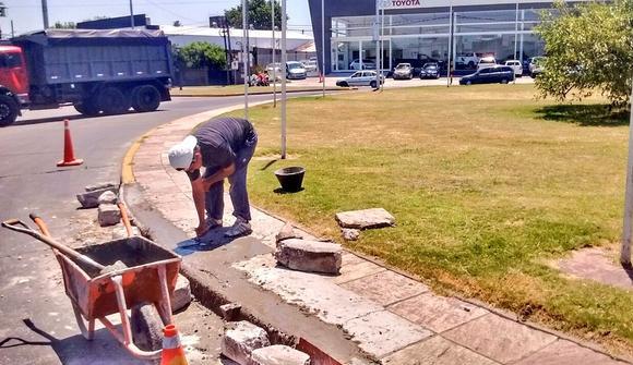 Las tareas a cargo del municipio contemplaron la reparaci贸n de cordones y rotondas y se realizaron trabajos de pintura en sendas peatonales de Cris贸logo Larralde