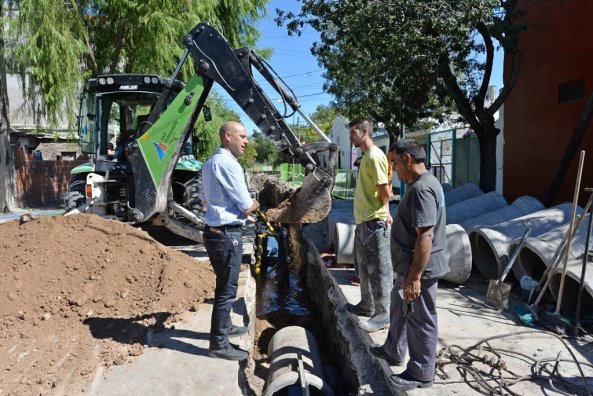 Personal y maquinaria del Municipio entuban el arroyo debajo de calle Chacabuco, entre Rucci y Colectora Sánchez, para encausar el agua de lluvia a la estación de bombeo N° 7.