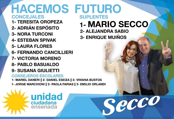 Unidad Ciudadana de Ensenada presentó sus pre candidatosEl espacio creado y liderado por Cristina Fernández de Kirchner y que en Ensenada tiene como principal figura al intendente Mario Secco, elevó la nómina para las PASO. |