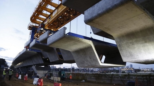 | 16-07-2018 | La lanzadora cuelga las dovelas para que puedan ser “atadas” con cables de acero antes de ser montadas sobre las columnas | |