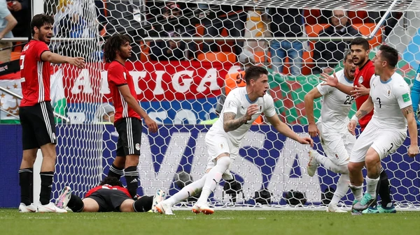 Triunfo ag贸nico de Uruguay Con un cabezazo de Gim茅nez, los charr煤as se impusieron sobre la hora por 1-0 ante el Egipto de C煤per, quien dej贸 a Salah en el banco. |
