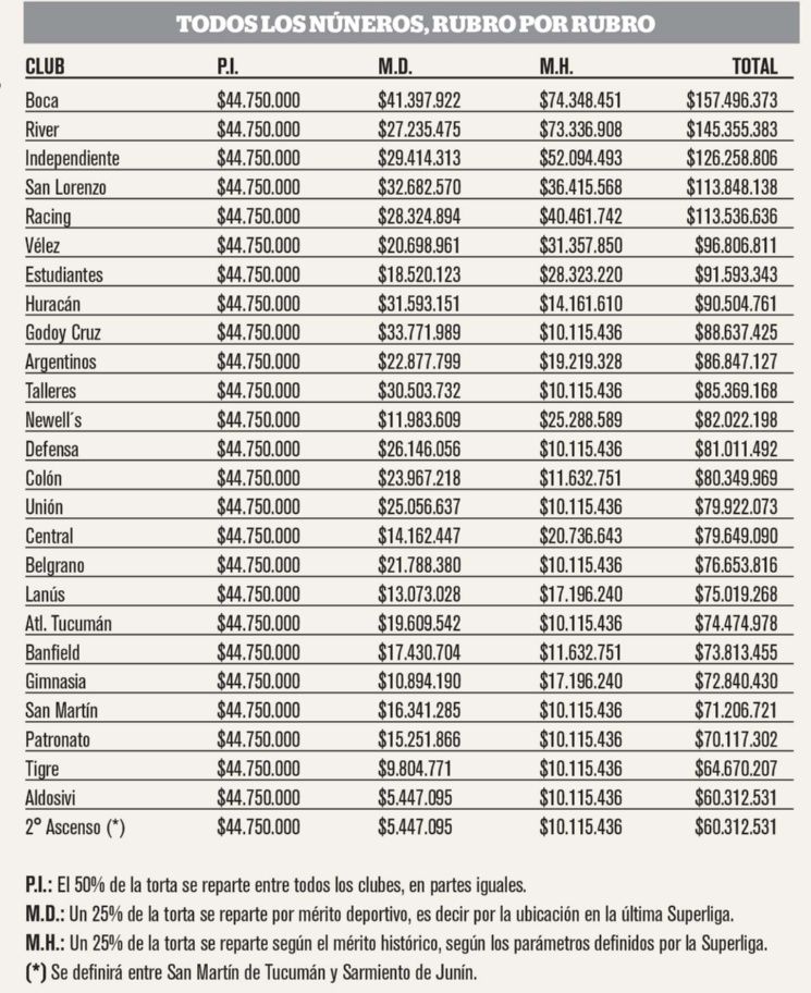 Cuanto cobrara cada club por la televisi贸n Ser谩 bajo los nuevos criterios de reparto. El monto total asciende a $2.327.000.000 y la mitad ser谩 distribuido por partes iguales. |