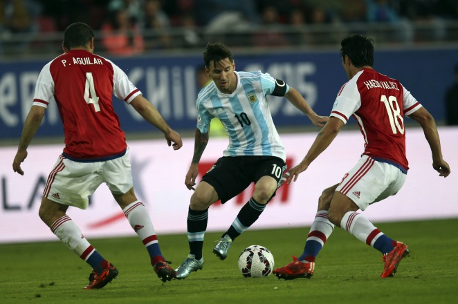 El seleccionado argentino de f煤tbol igual贸 2 a 2 con su par de Paraguay, en su debut en la Copa Am茅rica. El Kun a los 28 del primer tiempo y Messi de penal a los 35, marcaron para la albiceleste. Descont贸 Haedo Vald茅z y Barrios lo empat贸.