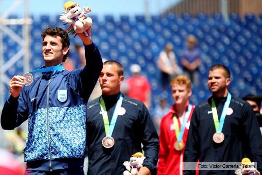 El atleta bonaerense Germ谩n Lauro conquist贸 la medalla de bronce en la prueba de lanzamiento de bala en los XVII Juegos Panamericanos de Toronto, Canad谩, 2015.