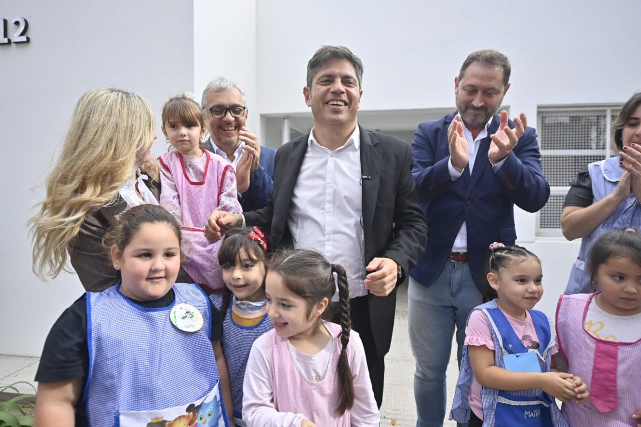 El gobernador de la provincia de Buenos Aires, Axel Kicillof, encabez贸 este viernes el acto de inauguraci贸n de la refacci贸n integral del Jard铆n de Infantes N掳912 del municipio de Lincoln, donde adem谩s entreg贸 escrituras gratuitas a 292 familias del distrito. Fue junto al ministro de Justicia y Derechos Humanos, Juan Mart铆n Mena; el subsecretario de Educaci贸n, Pablo Urquiza; el intendente local, Salvador Serenal; y la directora de la instituci贸n educativa, Laura Garz贸n.