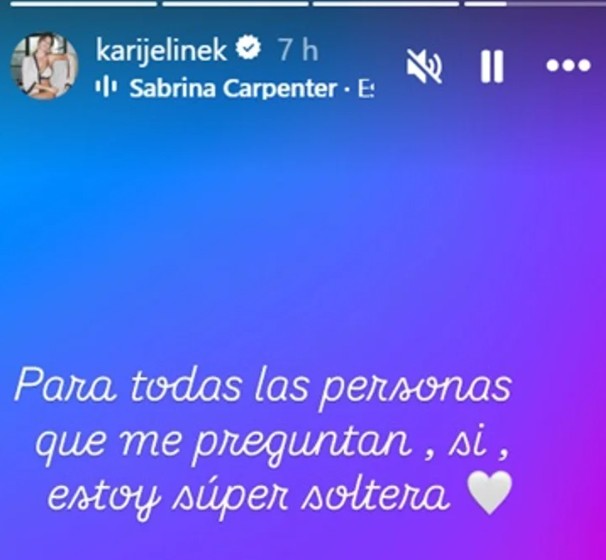 Sin embargo, ahora la pelea habrÃa sido más profunda porque Jelinek afirmó en redes que se encuentra soltera. "Para todas las personas que me preguntan, sÃ, estoy súper soltera", escribió la modelo.