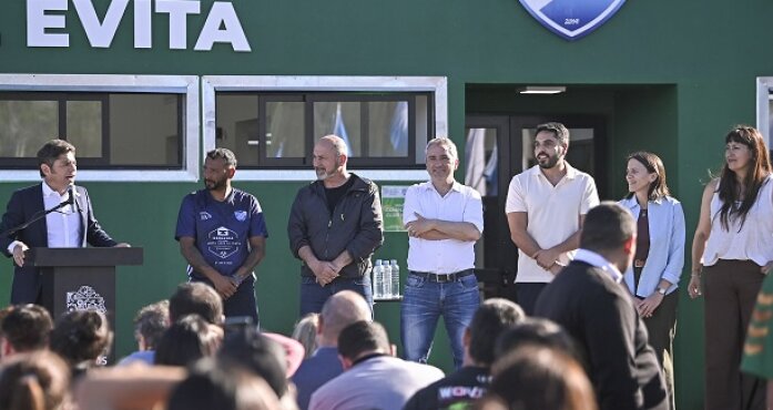El gobernador de la provincia de Buenos Aires, Axel Kicillof, encabezó este martes la inauguración del complejo deportivo del Club Nacional Evita en el municipio de Ensenada. Fue junto al ministro de Desarrollo de la Comunidad, Andrés Larroque; el intendente local, Mario Secco; el dirigente Hugo Moyano (h); y el presidente del club, Rodrigo Herrera. En ese marco, Kicillof destacó que “esta inauguración forma parte de un plan de obras de infraestructura que estamos llevando adelante para traer bienestar y mejor calidad de vida a los vecinos y vecinas de Ensenada”. “Solo quienes no conocen nuestra provincia pueden desconocer la importancia que tienen los clubes de barrio y las políticas deportivas que apuntan a incluir a todos los pibes y las pibas”, agregó. “En la provincia de Buenos Aires se cayó el mito de que nuestro pueblo estaba dispuesto a acompañar el ajuste y la motosierra del Gobierno nacional: las y los bonaerenses se expresaron y dijeron que aquí no hay lugar para políticas anarco-capitalistas”, afirmó el Gobernador y añadió: “Milei no entendió que nuestro pueblo no quiere más timba y negocios financieros, sino más trabajo, salud y educación”. El nuevo espacio busca promover el deporte, la inclusión y el encuentro comunitario entre los vecinos y vecinas de Punta Lara. La infraestructura incluye playón deportivo, cancha de fútbol, SUM con cocina, enfermería y un espacio público con juegos, entre otras áreas. Por su parte, Larroque remarcó: “El Club Evita, al igual que todos los clubes de barrio del país, sólo recibe por parte del Gobierno nacional indiferencia y la excusa de que no hay plata. En la provincia de Buenos Aires y en Ensenada vamos en el sentido contrario: esta inauguración fue posible gracias a una inversión pensada para fortalecer los lazos de la comunidad”. Al respecto, Secco subrayó: “Estamos poniendo en valor todos los clubes de la ciudad porque creemos que son un espacio indispensable en el que los pibes y pibas comparten momentos y experiencias formadoras: esta es una nueva casa en la que van a encontrar deporte, cultura y contención”. Asimismo, Moyano manifestó que “inaugurar espacios como estos son centrales para que los vecinos y vecinas realicen sus prácticas deportivas y fortalezcan los vínculos como comunidad”. En tanto, Herrera sostuvo: “Es un día muy especial para el club y para todo nuestro barrio: estas nuevas instalaciones son un sueño hecho realidad”. Estuvieron presentes la jefa de Asesores del Gobernador, Cristina Álvarez Rodríguez; el ministro de Infraestructura y Servicios Públicos, Gabriel Katopodis; el subsecretario de Deportes, Cristian Cardozo; el vicepresidente ejecutivo de Aguas Bonaerenses (ABSA), Fernando Coronel; el presidente del Honorable Concejo Deliberante de Ensenada, Luis Blasetti; las dirigentas Fernanda Miño y Silvia Saravia; y la concejala Silvina Nardini. |