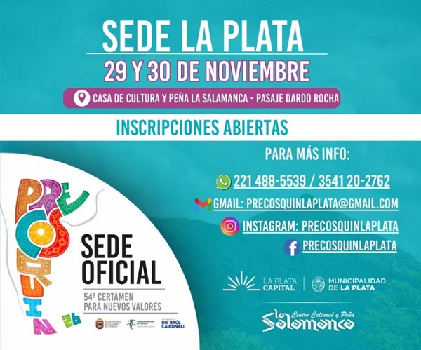 Según se indicó desde el espacio de difusión y promoción de la competencia Casa de Cultura y Peña La Salamanca, las personas interesadas deben enviar un correo a precosquinlaplata@gmail.com, consignando sus datos personales y los requisitos obligatorios que se solicitan. Para consultas, pueden comunicarse al 221 488 5539.
