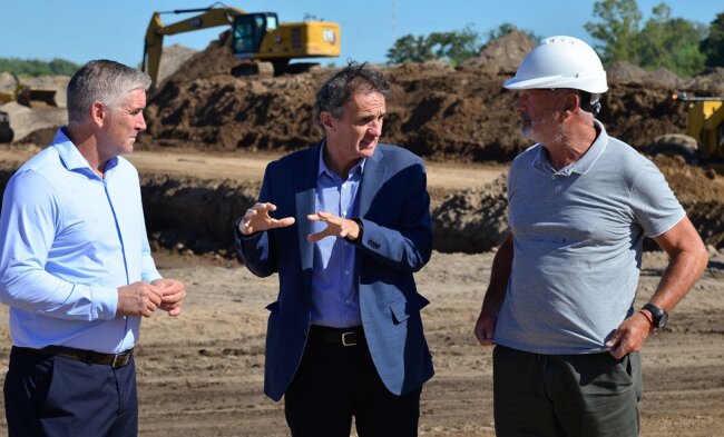 El ministro de Infraestructura y Servicios Públicos, Gabriel Katopodis, y el intendente de Navarro y, Facundo Diz, recorrieron las obras hidráulicas que se realizan en la ciudad con un nuevo reservorio y sistema de pluviales.