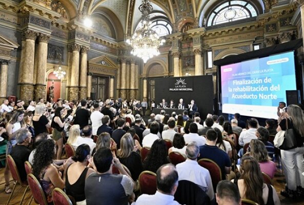 El gobernador de la provincia de Buenos Aires, Axel Kicillof, encabez贸 este martes el acto de habilitaci贸n del Acueducto Norte de la ciudad de La Plata, una obra que demand贸 una inversi贸n de $10.213 millones para mejorar el abastecimiento de agua potable en la capital bonaerense. Fue en el Sal贸n Dorado de la Municipalidad, junto al intendente local, Julio Alak; el ministro de Infraestructura y Servicios P煤blicos, Gabriel Katopodis, y el subsecretario de Recursos H铆dricos, N茅stor 脕lvarez.