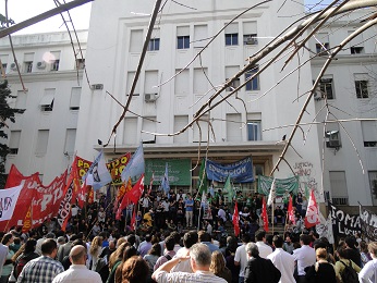 En ese sentido, ATE denuncia la criminalizaci贸n de la protesta social por parte del Gobierno bonaerense, a cargo de Daniel Scioli, que detuvo por su actividad gremial y por orden del juez C茅sar Melazo, "a los delegados Alejandro S谩nchez Moreno, Mar铆a In茅s Uro, Silvia Valdez Abalos, Miguel Ciappina. Adem谩s, la Polic铆a busca a Giselle Mendoza y Marcelo Ardetti".