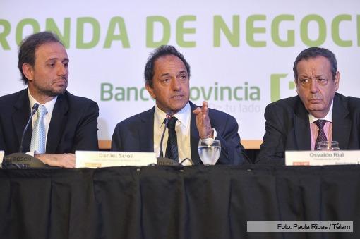 Acompa帽ado por funcionarios provinciales y los candidatos a concejales por el Frente para la Victoria, que encabeza Hern谩n Letcher, Scioli habl贸 en el Club Ferrocarril Mitre del distrito de San Mart铆n, ante un auditorio de empresarios en el marco de una ronda de negocios que promueve el Banco Provincia (Bapro). "Estoy convencido de que si seguimos apostando y cuidando entre todos al desarrollo de las pymes, la producci贸n y la industria, los mejores tiempos son los vendr谩n", dijo Scioli en su discurso, en el que pidi贸 "cuidar" los avances conseguidos en los 煤ltimos 10 a帽os. En ese marco, el mandatario bonaerense exhort贸 al "trabajo conjunto entre la Naci贸n, Provincia y los sectores" de la producci贸n y el trabajo para defender "los avances alcanzados, corregir y poner fuerza en todo lo que falta hacer". "Tenemos la oportunidad de seguir construyendo m谩s y mejor futuro", apunt贸 y dijo que para ello "todos los sectores tenemos que estar del mismo lado del mostrador en una asociaci贸n estrat茅gica entre el campo, el comercio, la industria, la construcci贸n, el gobierno y gremios" para hacer "crecer la provincia en beneficio" de toda la ciudadan铆a. En otro tramo, Scioli reivindic贸 la decisi贸n de la presidenta Cristina Fern谩ndez de Kirchner de reformar el impuesto a las ganancias para que los que perciban sueldos menores a 15.000 pesos no paguen el tributo y dijo que con esta medida "el gobierno viene demostrando que puede generar las condiciones para esa movilidad ascendente" que beneficia a todos los sectores. "Son decisiones para generar las condiciones para que la clase media pueda estar mejor, que haya cada vez m谩s trabajo y movilidad ascendente, y contribuir a un mercado interno vigoroso que es lo que nos permite d铆a a d铆a encarar nuevos proyectos", a帽adi贸. Tambi茅n destac贸 la labor que viene desarrollando el Banco Provincia, como "aliado socio estrat茅gico" de las pymes, otorgando "l铆neas de cr茅dito para cada necesidad y sector de la vida econ贸mica" de la provincia de Buenos Aires. Scioli estuvo acompa帽ado por el titular del Bapro, Gustavo Marangoni; y la ministra de Gobierno bonaerense, Cristina 脕lvarez Rodr铆guez, entre otros funcionarios. |