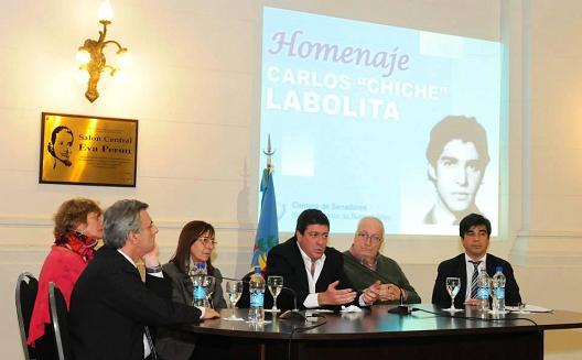El acto se realiz贸 este mi茅rcoles por la tarde en el Anexo del Senado y estuvieron presentes don Carlos Labolita, padre de Chiche; In茅s, la hermana y Gladis D'alessandro, esposa del joven militante desaparecido que junto a 茅l, comparti贸 momentos de su vida con N茅stor Kirchner y la actual presidenta Cristina Fern谩ndez de Kirchner.