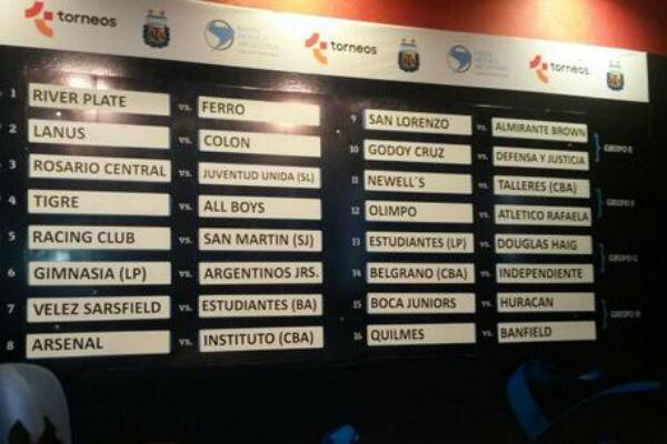 En tanto, San Lorenzo intentará "vengarse" de lo ocurrido en la última edición y comenzará su camino ante Almirante Brown (el que pase irá ante Godoy Cruz o Defensa y Justicia), Racing apuntará todos sus cañones a esta competición y medirá sus fuerzas con San MartÃn de San Juan (el que avance irá ante Gimnasia La Plata o Argentinos) e Independiente, que aún desconoce su futuro, tendrá que desafiar a Belgrano (el que saque el boleto irá ante Estudiantes o Douglas Haig).