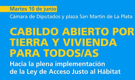 Con el objetivo de promover la plena implementación de la Ley de Acceso Justo al Hábitat, la Cámara de Diputados de la Provincia de Buenos Aires realizará este martes la Jornada "Cabildo abierto por Tierra y Vivienda para todos y todas". La misma comenzará a las 9 y se extenderá durante el dÃa con diversas actividades.
