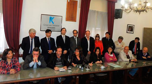 El bloque de senadores del Frente Para la Victoria de la Provincia de Buenos Aires, manifest贸 su repudio a la decisi贸n de la Corte Suprema de los Estados Unidos de rechazar la apelaci贸n de la Rep煤blica Argentina y fallar a favor de los denominados "fondos buitres" y reafirm贸 su apoyo a la Presidenta de la Naci贸n, Cristina Fern谩ndez de Kirchner, en la defensa de la soberan铆a y los intereses del pueblo argentino.