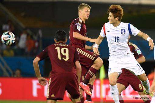 Sin embargo, el arquero Igor Akinfeev, pese a que se mostr贸 inseguro, se hizo presente para detener dos disparos desde afuera de Koo Ja-Cheol y Ki Sung-Yueng, que fueron un llamado de atenci贸n para el fondo ruso.
