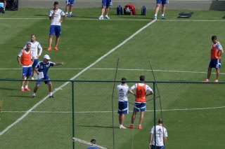 La práctica de esta mañana contó con la visita del presidente de la Asociación del Fútbol Argentino, Julio Grondona, quien se fundió en un abrazo con Messi al terminar el trabajo.