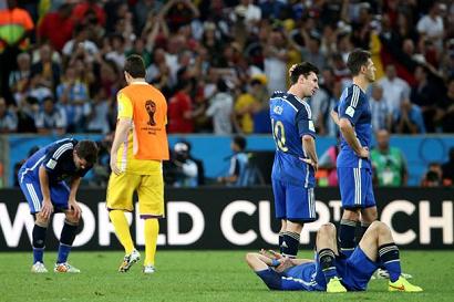 Es un mazazo, un golpe que va directo al coraz贸n. Esta vez, las l谩grimas no son de alegr铆a, brotan de tristeza. Ya es de noche en el Maracan谩 y la Argentina cae desplomada. Lionel Messi tiene en su bot铆n la 煤ltima chance y lanza muy arriba un tiro libre. Javier Mascherano comete la 煤ltima infracci贸n del partido y el 谩rbitro italiano Nicola Rizzoli marca el final. Saltan los alemanes, gritan euf贸ricos, son campeones del mundo. Del otro lado, la selecci贸n es pura tristeza.