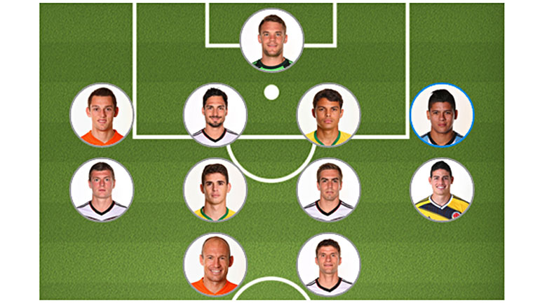 La FIFA public贸 el equipo ideal de la Copa del Mundo 2014, con algunas contradicciones que hacen dudar del sistema de selecci贸n de futbolistas que lo componen. Tal es el ejemplo de Lionel Messi, elegido por el ente rector del f煤tbol como el mejor futbolista del certamen, quien no figura en el once ideal, ni tampoco entre los mejores 10 de la Copa. El mejor para el 脥ndice Castrol fue el alem谩n Toni Kroos.
