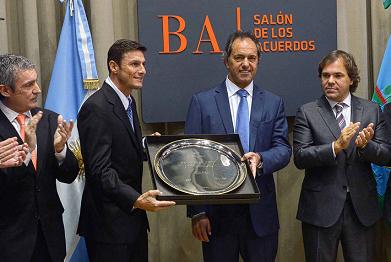 El gobernador Daniel Scioli reconoci贸 hoy al ex jugador de la selecci贸n Argentina de f煤tbol y creador de la "Fundaci贸n Pupi, Javier Zanetti", por "promover e impulsar a trav茅s de toda su experiencia los valores del deporte como gran integrador en la sociedad", en el marco del seminario "El Deporte y la Inclusi贸n Social", en Casa de Gobierno.