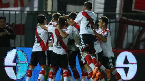 River Plate derrot贸 esta noche 4-2 a Col贸n de Santa Fe en la definici贸n por remates desde el punto penal, tras igualar 0 a 0, en el estadio Juan Gilberto Funes de La Punta de San Luis, y se clasific贸 a los cuartos de final de la Copa Argentina de f煤tbol donde enfrentar谩 al ganador del cotejo entre Rosario Central y Tigre.