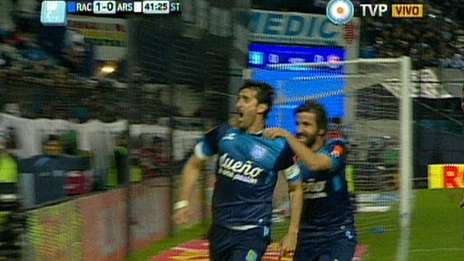 A los 44m. Centuri贸n realiz贸 una corrida de 60 metros y le dio un pase a Diego Milito, cuyo remate se fue apenas arriba, mientras que luego el goleador habilit贸 al colombiano Wason Renter铆a, quien finalmente debut贸 en la 'Academia' (lleg贸 a principios de a帽o pero se lesion贸), y su remate fue desviado por un defensor.