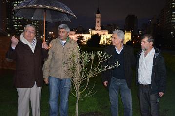 Posteriormente, los presentes se trasladaron a Plaza Moreno en donde plantaron un olivo. En ese sentido Muaqqat manifest贸 que "es un honor sembrar este olivo, y ojal谩 signifique un paso m谩s hacia la paz y la justicia".
