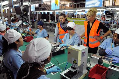 La Presidenta de la Fundación Banco Provincia, Karina Rabolini de visita a Tierra del fuego, donde realizó actividades solidaria, además recorrió las instalaciones de la fábrica New Sam dedicada a la fabricación de productos de electrónica en artículos para el hogar en donde conversó con las trabajadoras de las líneas de producción para interiorizarse sobre la situación laboral y en clara campaña positiva por su esposo, Daniel Scioli de cara a las "presidenciales 2015" destacó que "se viene una etapa de desarrollo, con mucho trabajo y producción". La Primera Dama bonaerense y esposa del gobernador Daniel Scioli manifestó que "para Daniel gobernar es dar trabajo y para la etapa del desarrollo que se avecina, la producción y el trabajo serán un pilar fundamental". Rabolini realizó la visita a la empresa acompañada de la senadora nacional Roxana Bertone y al coordinador de la Fundación DAR, José Pepe Scioli. |