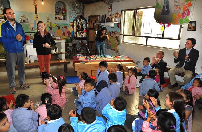 En una iniciativa conjunta de la Jefatura de Gabinete que conduce Alberto Pérez, junto a la Editorial Santillana a través de la dirección provincial de Responsabilidad Social Empresaria, se entregó a la totalidad de los alumnos del instituto parroquial de la Villa 1.11.14 a cargo del cura Hernán Morelli, más de 450 libros en castellano e inglés, literatura infantil y material complementario y de consulta recomendados por la currÃcula escolar.