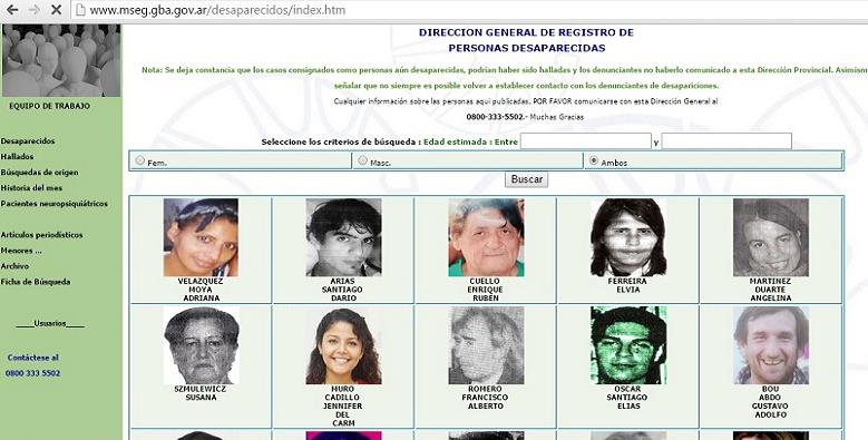 A trav茅s del link http://www.mseg.gba.gov.ar/desaparecidos/index.htm, es posible ver on-line las fotos de las personas no identificadas halladas en la v铆a p煤blica o en establecimientos sanitarios, informaron oficialmente.