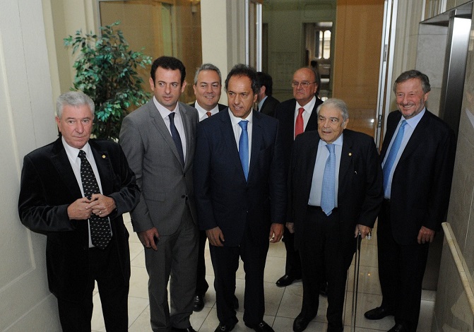 El gobernador Daniel Scioli acompañado por el ministro de la Producción, Ciencia y Tecnología Cristian Breitenstein, mantuvo hoy una reunión de trabajo con la cúpula de la Unión Industrial Argentina (UIA) encabezada por su presidente, Héctor Méndez.