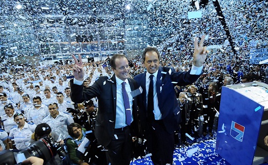 | Daniel Scioli junto a MartÃn Insaurralde: "Somos la victoria del futuro sobre el pasado" | |||