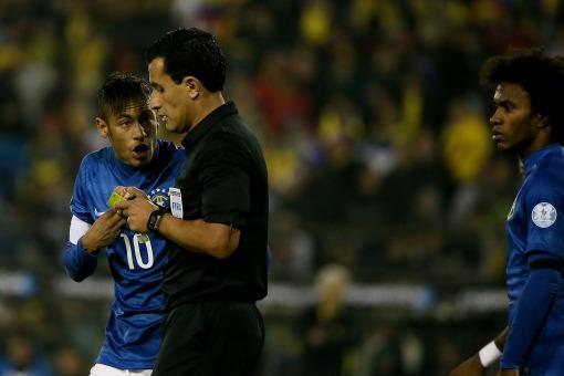 Neymar recibi贸 en el cotejo ante el equipo dirigido por el argentino Jos茅 Pekerman la segunda tarjeta amarilla en la misma cantidad de presentaciones y de todas formas se iba a perder el 煤ltimo partido de la "verdeamarelha" en el Grupo C frente a Venezuela, pero la tarjeta roja que le mostr贸 el 谩rbitro chileno Enrique Oss茅s al t茅rmino del encuentro a ra铆z de las agresiones que propici贸 a jugadores colombianos, m谩s algunos denuestos al propio juez del partido, agravaron su situaci贸n.