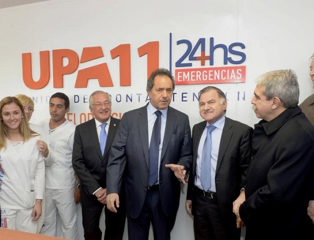 El gobernador Daniel Scioli, asegur贸 hoy que, "lo que es una realidad para la provincia de Buenos Aires quiero que sea un proyecto para el pa铆s", al inaugurar la Unidad de Pronta Atenci贸n (UPA 24 horas) n煤mero 11, en Florencio Varela, junto al intendente local, Julio Pereyra; el jefe de Gabinete de la Naci贸n, An铆bal Fern谩ndez, y el gobernador de Jujuy y presidente del PJ nacional, Eduardo Fellner.