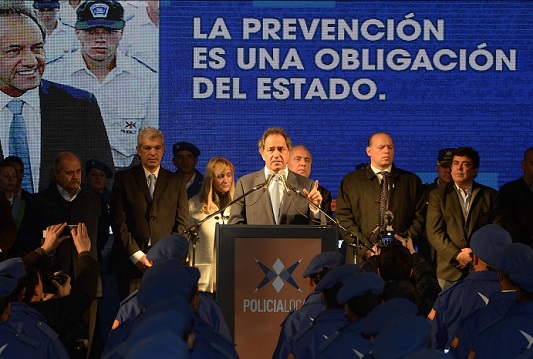 En este marco, Scioli reafirm贸 "quiero una Polic铆a local con autoridad pero no autoritaria, que a partir de la ense帽anza de estos meses tengan apego a la ley, incorporando conocimientos que puedan volcarlos con resultados contundentes aqu铆 en sus municipios".