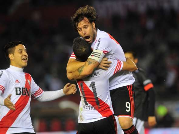 En ese inter铆n, el equipo local tom贸 ventaja a los 16m., cuando se juntaron los dos goleadores de estirpe 'millonaria' y Saviola mand贸 un centro para que Cavenaghi acomode su cuerpo y meta un cabezazo bombeado que se tradujo en el 2-1. El delantero nacido en O'Brien sum贸 su gol n煤mero 112 con la camiseta de la 'Banda' y lleg贸 a las 11 conquistas en este certamen.