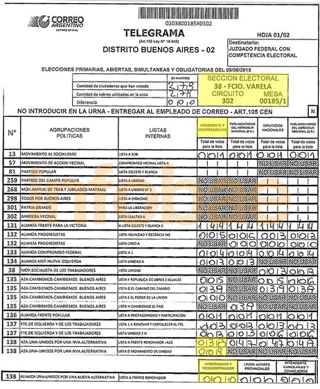 Un día después de haber hecho la denuncia pública y horas antes de efectuar una presentación judicial por las irregularidades en telegramas que no computaron en las PASO 192.000 votos presumiblemente propios, el ex gobernador bonaerense y candidato a ese cargo por el frente UNA, Felipe Solá, pedirá la "apertura de urnas" que ofician como prueba de lo ocurrido. En representación de Solá, hizo el anuncio el ex ministro de Desarrollo Social y compañero de fórmula, Daniel Arroyo de él. "Queremos que abran las urnas y cuenten los votos para saber qué pasó; hay un problema con las planillas, no con las boletas, así que la única forma de saberlo es abriendo las urnas", explicó. Arroyo coincidió con lo dicho por Solá, respecto de que "es prácticamente imposible" que en el territorio bonaerense el candidato a gobernador haya obtenido un 2,35 por ciento menos que los candidatos a presidente de UNA juntos, Sergio Massa y José Manuel De la Sota. Lo que podría haberse leído como un corte de boleta muy marcado encendió las luces de alerta cuando al ver los telegramas de las mesas, en decenas de estas el ex gobernador aparece con "cero votos", es decir que ni los propios fiscales de UNA de la mesa votaron a Solá. Sólo en Mar del Plata, Solá y sus asistentes detectaron un faltante de 15.338 votos, lo que es equivalente a casi el 5% de los sufragios emitidos en ese partido, segundo municipio más grande de la provincia. Casos iguales se dieron en La Matanza, La Plata, Florencio Varela y Adolfo Alsina, entre otros. El candidato a vice de Solá no descartó que hayan sufrido la "compra" o "soborno" de los fiscales propios por parte de otras fuerzas, para "dibujar" las planillas. "Puede haber connivencia o puede haber errores; hay distintas situaciones. Pero todo se resuelve abriendo las urnas", puntualizó… Cabe remarcar que el interés de Solá en la diferencia de más de 192.000 votos entre él y Massa como candidato presidencial de su fuerza, radica en que si estos fueran sufragios propios, habría superado al jefe de gabinete, Aníbal Fernández, quien quedó segundo en las PASO, detrás de la candidata del PRO a gobernadora, María Eugenia Vidal. |