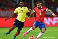 Chile, vigente campe贸n de Am茅rica, igual贸 con Colombia 1 a 1 en un discreto partido jugado en el estadio Nacional de Santiago y resign贸 la punta de las Eliminatorias Sudamericana rumbo al Mundial Rusia 2018, al comenzar la tercera fecha.
