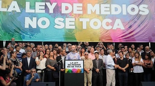 Bajo la consigna "La ley de Medios no se toca", el acto comenz贸 con una una serie de espect谩culos musicales, en una jornada que inicialmente, fue convocada en respuesta a las declaraciones del nuevo ministro de Comunicaciones, Oscar Aguad, que el fin de semana pasado asegur贸 que "la regulaci贸n" establecida por la Ley "no va a subsistir".