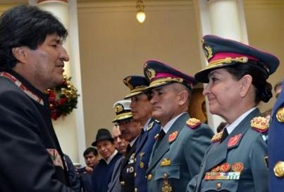 En el despacho de Morales cuelga un cuadro del "Che" y las Fuerzas Armadas han incorporado el grito de guerra cubano "Victoria o muerte: ¡venceremos!" a su repertorio, entre otras medidas adoptadas por el político boliviano para crear una conciencia militar "anticapitalista". Simultáneamente, Morales ha potenciado y alentado la participación de las Fuerzas Armadas en el Gobierno como nunca antes había pasado en democracia. Unas Fuerzas Armadas que, puertas adentro, siguen considerando su victoria sobre las guerrillas de los años 60 y 70, lograda con asesoramiento estadounidense, como una de sus glorias castrenses.