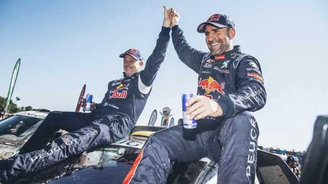 El franc茅s, quien se ha convertido en el m谩ximo referente de la prueba al ganar seis veces en motos (1991/92/93/95/97/98) y otras tantas en autos (2004/05/07/12/13/16), ratific贸 su mote de "Monseiur Dakar" y le entreg贸 a la marca del le贸n su quinta victoria (1987/88/89/90).