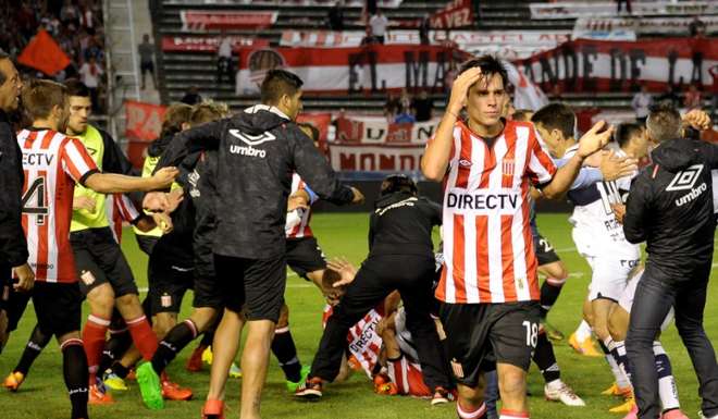 Cuando el cotejo qued贸 definitivamente suspendido y los dos planteles acordaron dejar el campo de juego en forma simult谩nea, los futbolistas de Estudiantes volvieron sobre sus pasos y, como para seguir tomando distancia con lo correcto y razonable, se fueron a festejar la copa con sus simpatizantes, quienes desde las gradas hac铆an flamear sus banderas.