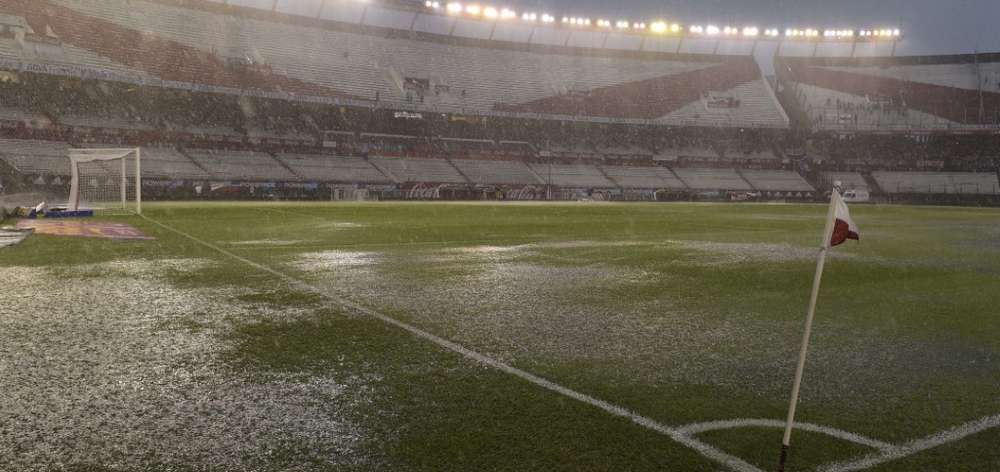 Por el lado de River Plate, el presidente, Rodolfo D'Onofrio, coment贸 que el campo de juego dren贸 la gran cantidad de agua que cay贸 dren贸 pero mucha qued贸 por debajo del pasto lo que iba a impedir el normal desarrollo del partido.